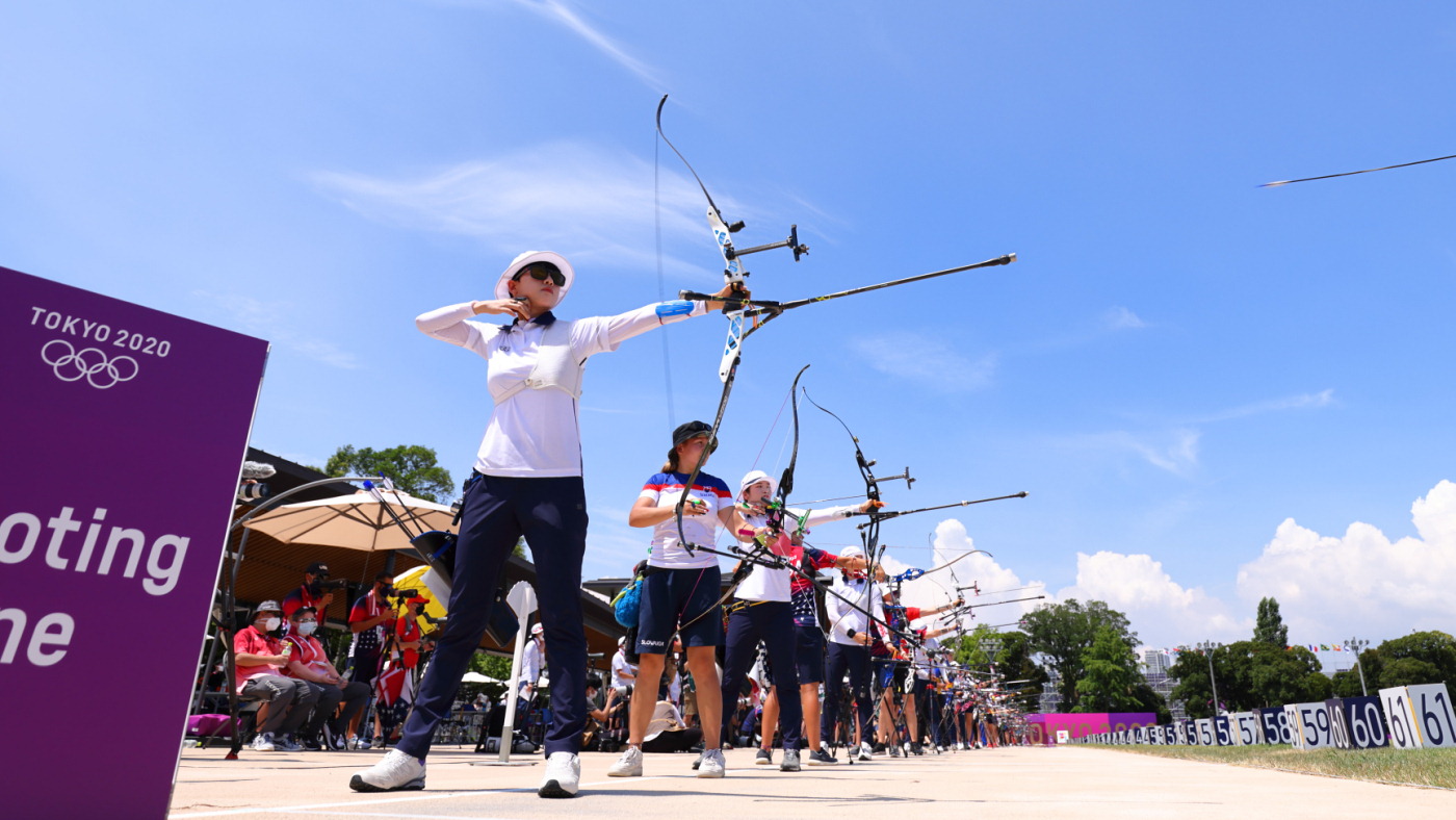 Женская сборная России по стрельбе из лука победила Германию в полуфинале Олимпиады в Токио.