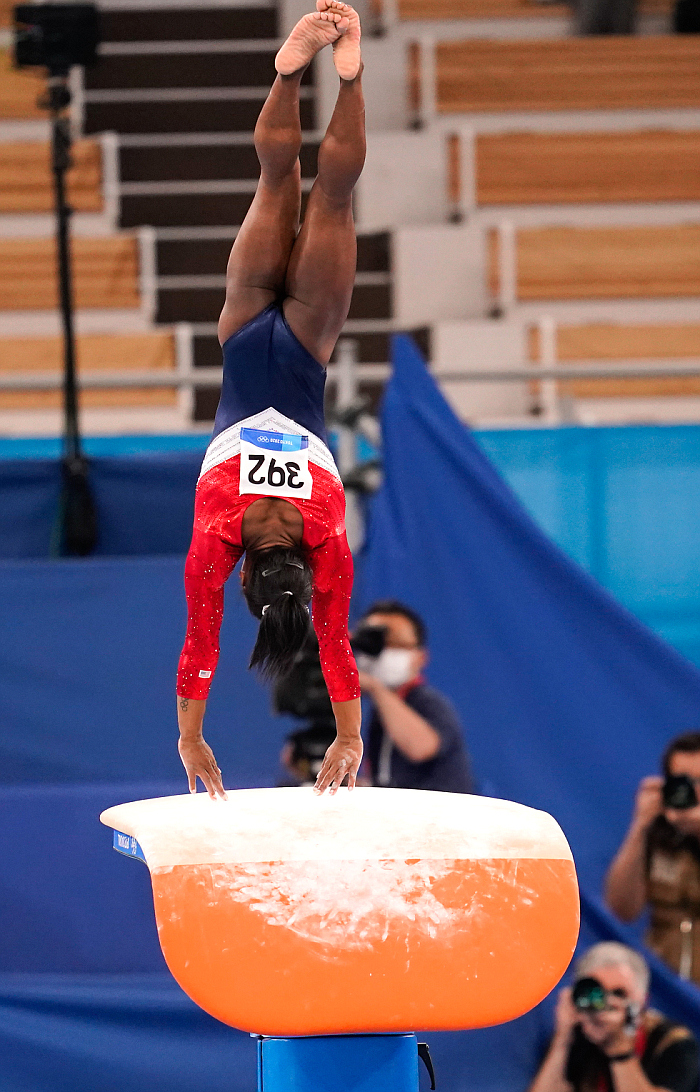 Сборную США — непобедимого фаворита — с самого начала подкосила травма ведущей гимнастки Симоны Байлз. Американка упала с бревна и, сославшись на боль в ноге, покинула зал.